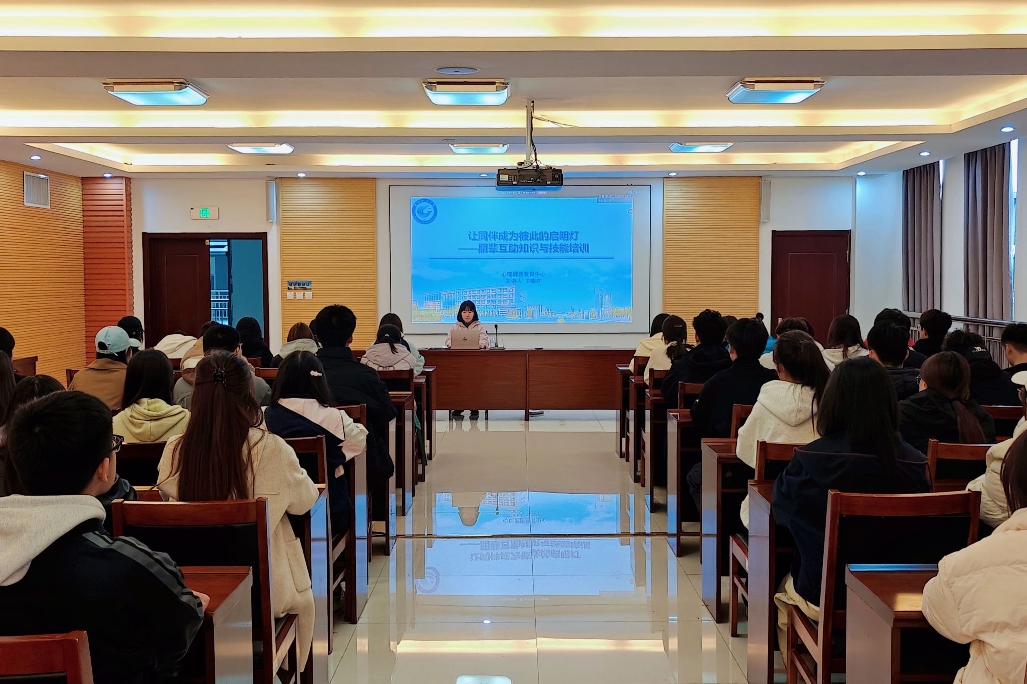 为进一步做好学院学生心理健康教育工作,有效防范化解学生心理危机事件,推进心理朋辈互助队伍的专业化建设,10月30日下午,学院在滨海校区清泽楼312报告厅组织开展了第七期心理朋辈互助队伍专题培训——让同伴成为彼此的启明灯,各二级学院班级心理委员参加培训。培训由团委学生工作处心理健康中心专职心理教师、国家三级心理咨询师王晓卉主讲。讲座中,王老师从走进朋辈辅导和心理委员、识别心理危机的警报信号、发现自杀信号怎样守护和安抚、...更多 -