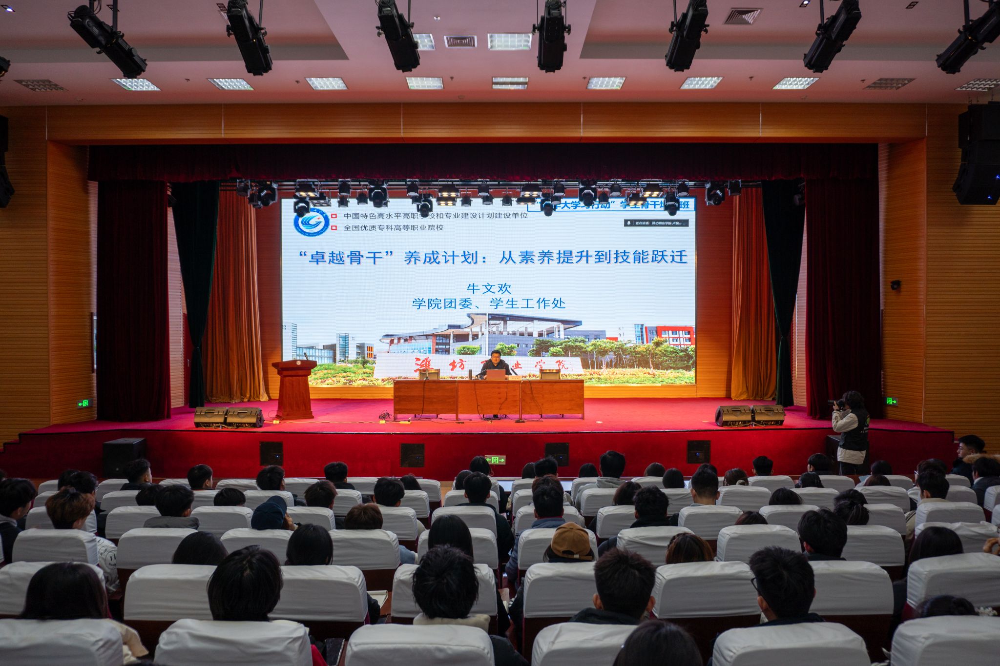 12月4日,为落实学院第七次学生代表大会工作要求,学院2025年“青年大学习行动”学生骨干培训班素质能力提升专题培训在滨海校区图书馆报告厅举行,团委相关负责同志,校院两级学生会工作人员、学生骨干及社团代表等400余人参加。培训会上,团委学生工作处负责同志以《“卓越骨干”养成计划:从素养提升到技能跃迁》为题作专题辅导。他深入领学习近平总书记关于青年工作的重要论述,解读团中央关于学联学生会改进作风、服务同学的相关文件,...更多 -