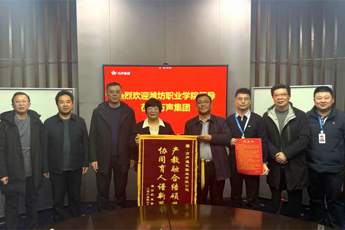 为深化产教融合校企合作,12月27日上午,学院院长韩瑞东,科技处、文化创意学院负责同志等一行5人赴万声通讯实业有限公司调研交流。双方就深化校企合作、推进产教融合高质量发展深入洽谈。万声集团总经理孙文玲,副总经理邱运乾热情接待。调研期间,韩瑞东一行参观了万声集团文化廊,详细了解企业发展历程、业务布局及文化建设成果,对企业深耕行业、重视人才培养的理念表示高度认可。座谈中,邱运乾介绍了双方合作以来的显著成效。...更多 -