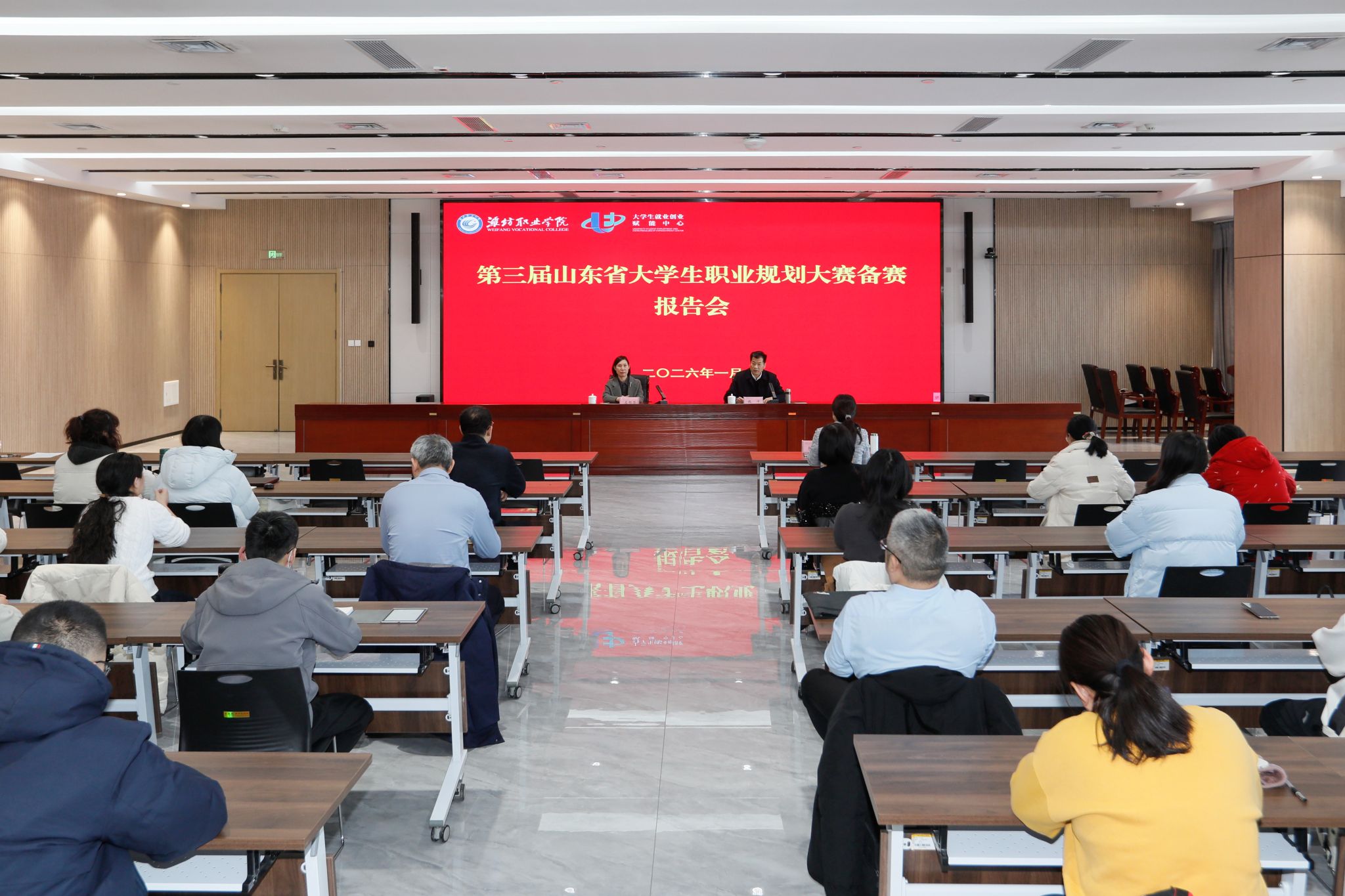 1月7日下午,学院在滨海校区举办第三届山东省大学生职业规划大赛备赛报告会。学院副院长陈美霞出席,招生就业处主要负责同志及相关人员,各二级学院分管副院长、职业规划大赛课程教学赛道参赛教师、就业赛道和成长赛道指导教师,职业规划和就业指导课授课教师代表等50余人参加了报告会。本次报告邀请全国大学生职业规划大赛课程教学赛道获奖者、全国大学生职业规划大赛全国总决赛金奖指导教师做备赛专题报告。专家围绕大学生职业规划大赛课程教学赛道的比赛方案与评审标准展开全面解读,...更多 -