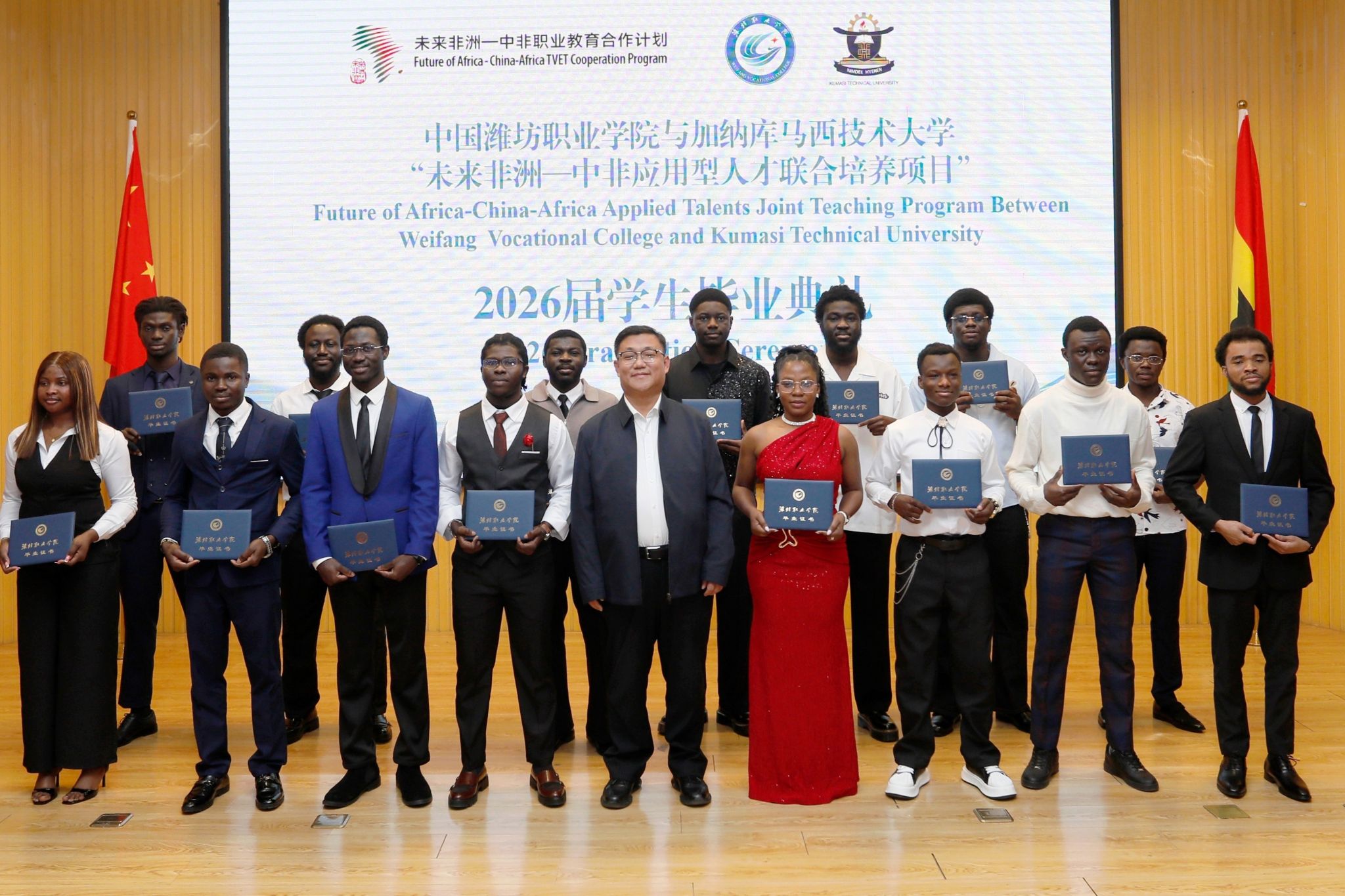 1月9日下午,学院“未来非洲—中非应用型人才联合培养项目”2026届学生毕业典礼在奎文校区6号楼报告厅举行。中共潍坊市委外事工作委员会办公室副主任卢杰,潍坊市公安局出入境管理支队政委孙文卿,学院院长韩瑞东,副院长陈美霞,党委委员、办公室主任刘志艳出席典礼。国际交流与合作处和机电工程学院等相关部门负责人及国际教育学院师生参加典礼。陈美霞主持典礼。卢杰向全体毕业生表示祝贺,并向两校教职员工的辛勤付出致以崇高敬意。...更多