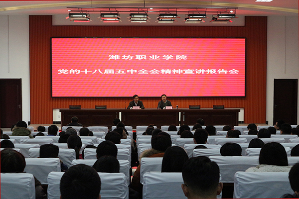 为深入学习宣传贯彻党的十八届五中全会精神,根据中央和省、市委的部署要求,12月4日,学院在滨海校区举行党的十八届五中全会精神宣讲报告会。报告会由学院党委副书记宋桂言主持。潍坊市委讲师团主任胡文君教授作了专题报告。学院中层以上干部及师生代表参加报告会。 胡文君教授全面解读了《中共中央关于制定国民经济和社会发展第十三个五年规划的建议》。他从深刻认识全面建成小康社会决胜阶段的形势、准确把握“十三五”时...更多 -