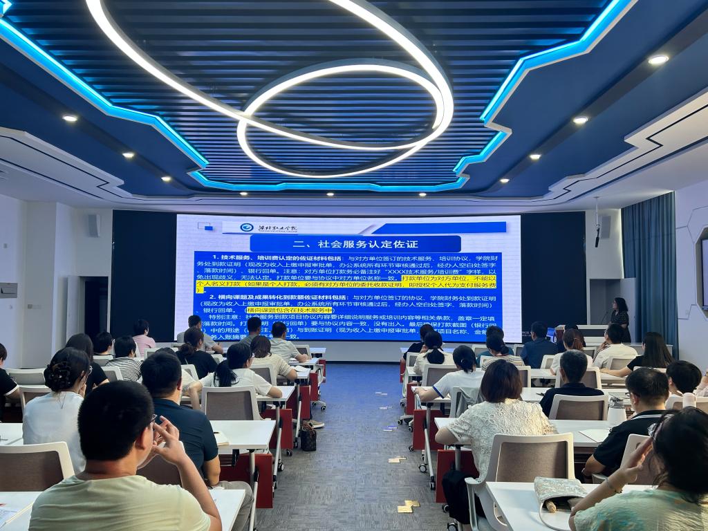 7 月 12 日,为进一步提升全体教师社会服务工作能力,农林科技学院在金泽楼102召开社会服务工作能力提升培训会。农林科技学院全体教职工参加会议,培训会由农林科技学院负责人主持。 培训会邀请了科技处产学合作科负责人郭冕老师作了题为《社会服务到款认定政策解读》的专题培训。郭冕老师从国家政策、社会需求等多个角度,深入分析了当前面临的新形势、新任务和新要求,并结合实际案例,提出了高职院校社会服务的创新思路...更多 -