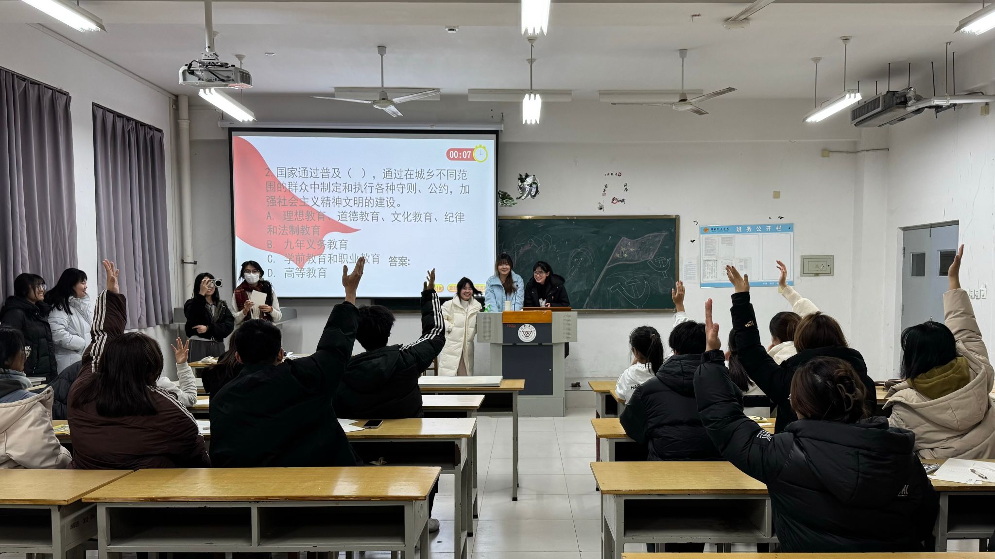 为弘扬宪法精神,培养农林学子的法治观念,提高法治素养,农林科技学院于12月3日至8日晚开展“弘扬宪法精神 共建法治校园”宪法知识竞赛。前期,经过严密组织筹划,农林科技学院参赛同学利用晚自习时间认真学习宪法相关知识,并通过线上答题初赛选拔出5个小组参加线下决赛。决赛分为手机答题和现场抢答两个部分,竞赛题目从宪法的作用、意义和内容等多方面,考察同学们对宪法基本知识的掌握情况。竞赛过程中,选手们严守纪律、积极作答,...更多