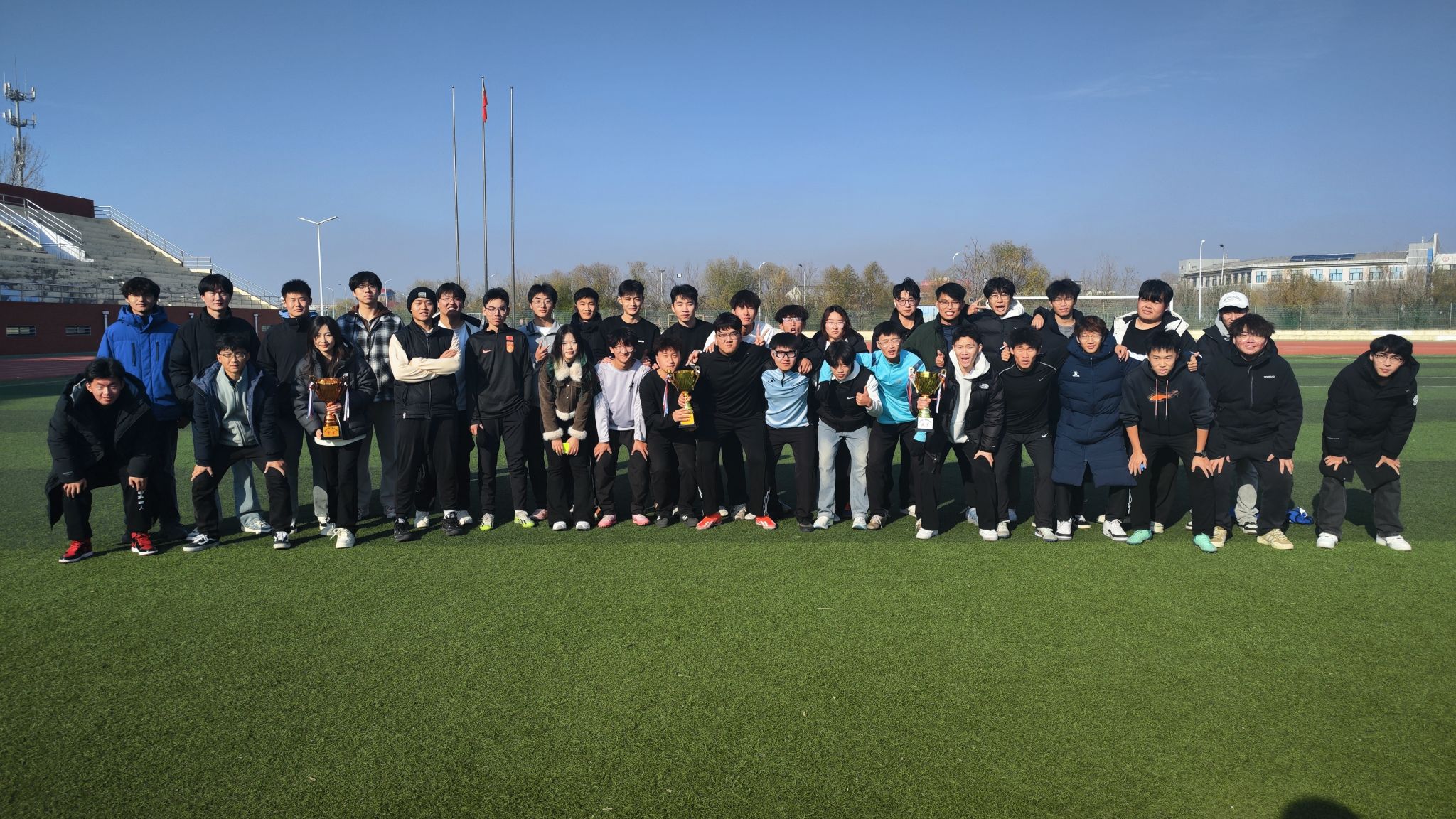 为丰富学生们的课余生活,提高足球运动水平,培养团队合作精神。农林科技学院于12月7日举办“绿茵燃梦杯”足球赛。本次足球赛赛程长达一个月,同学们以专业划分组成6支代表队。赛场上,球员们似猎豹般飞驰,足球在脚下精准传递,敏锐地探寻着对手的防线漏洞。对阵双方针锋相对、攻势迅猛,每一次交锋都惊心动魄。观众席间,加油呐喊声如汹涌浪潮,一波未平一波又起。历经激烈的角逐,园林工程技术队最终以2:0比分夺冠,他们精湛的球技与顽强不屈、...更多 -
