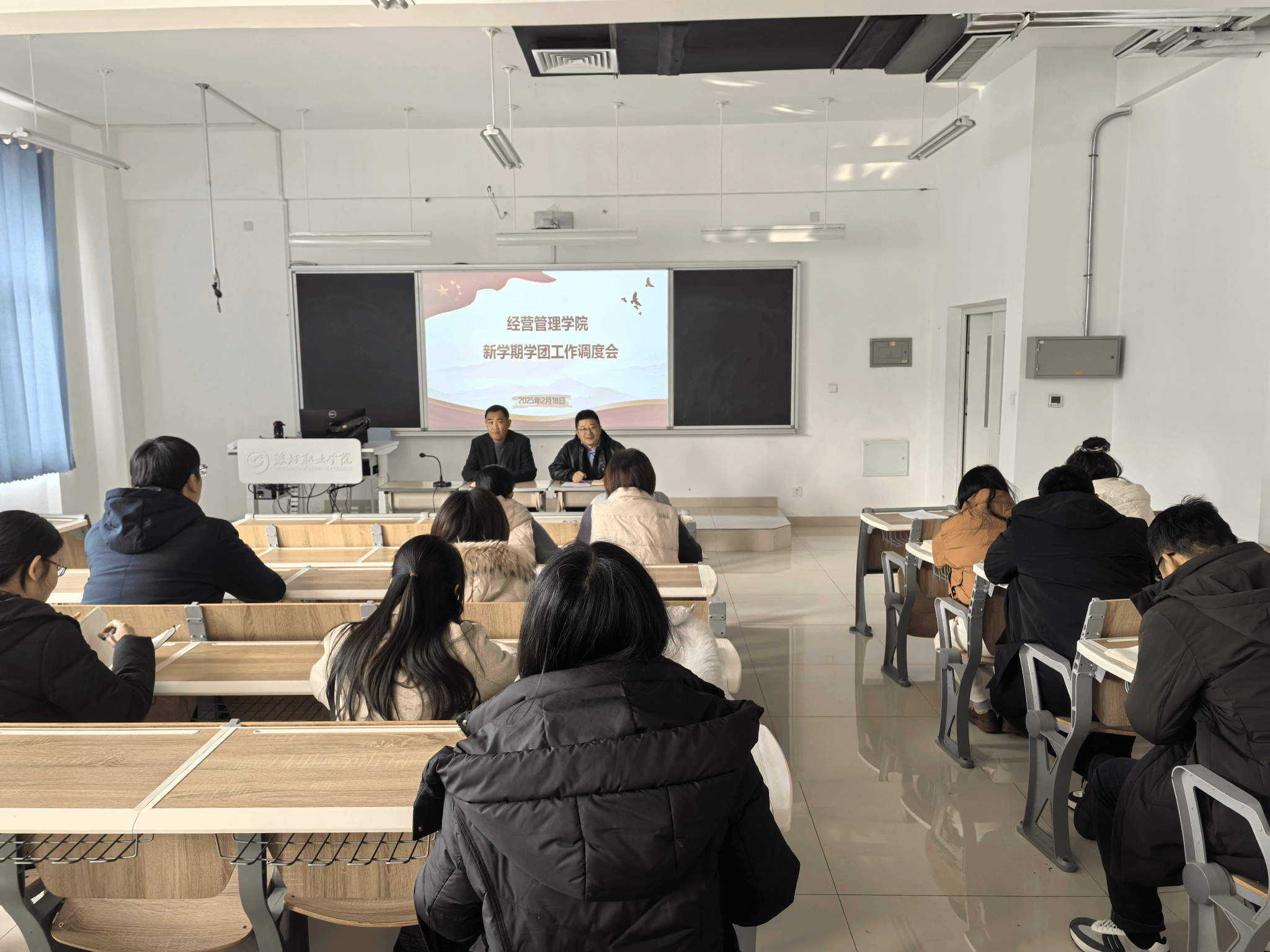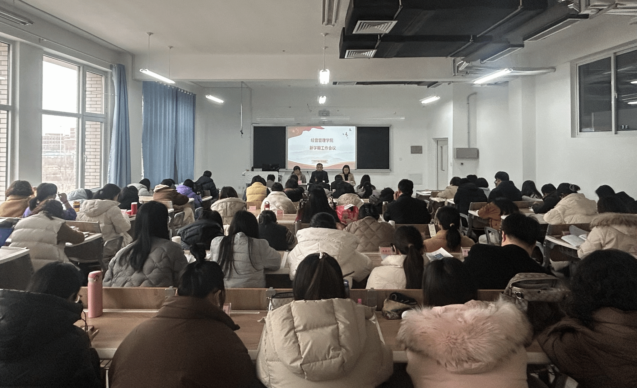 2月18日下午,经营管理学院在智泽楼B312召开新学期工作动员会,安排部署新学期工作,全体教职工参加会议。会议伊始,学院党总支主要负责同志对近期重要工作进行了梳理,包括开学安全排查、教学环境卫生、学生管理等。他强调,全体教职工要高度重视学生返校前的各项准备工作,确保开学工作平稳有序。随后,学院主要负责同志对寒假期间的各项工作进行了全面总结,并安排部署新学期的相关工作。她对寒假期间全体教职工在各项工作中的付出表示衷心感谢,...更多