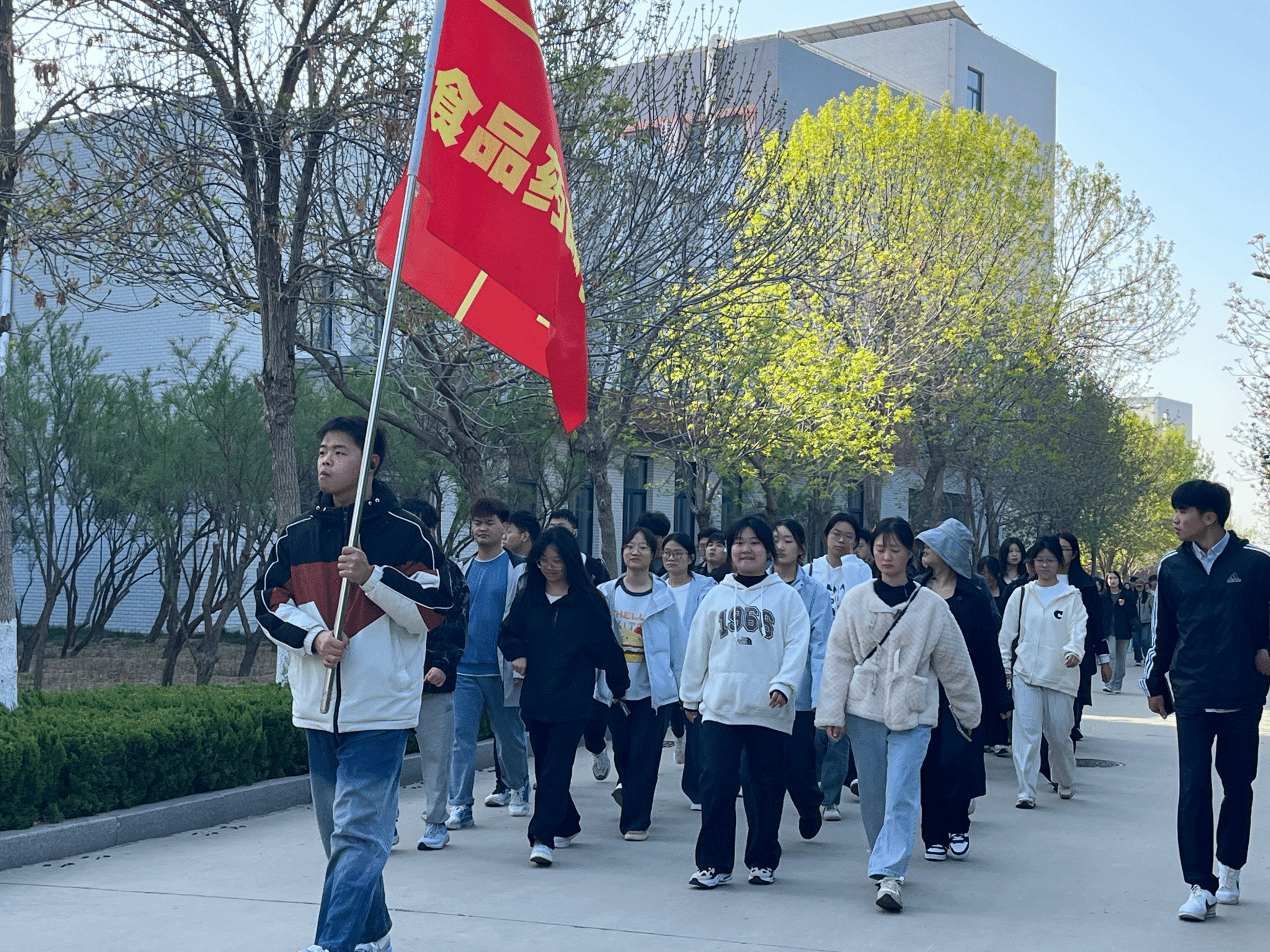 为践行健康校园理念,引导学生树立“强体魄、砺意志”的成长观,4月15日,食品药品学院组织300余名师生开展“健康同行·青春逐梦”主题徒步活动,以脚步丈量春色,用行动诠释青春。活动前期,各辅导员通过主题班会向学生积极宣传徒步活动的重要意义,详细介绍了活动的具体安排,鼓励学生以饱满的热情投入到活动中来。活动当天,全体师生沿着精心规划的“校园健康环线”有序出发,途经木泽楼实验教学区、鲁班锁文化广场等核心区域。同学们一边欣赏校园里的春日美景,...更多 -