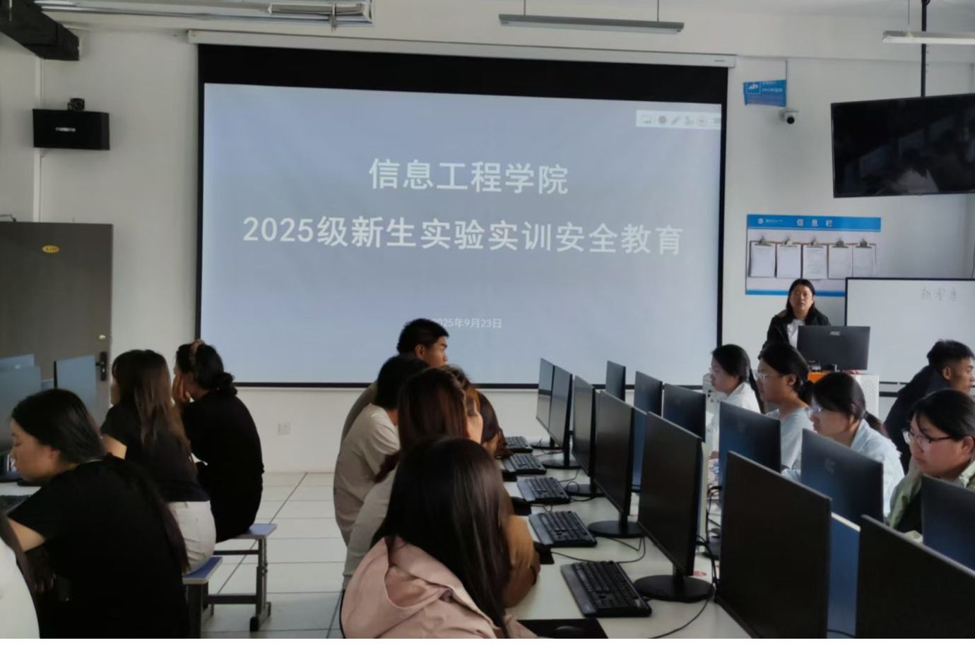 为落实“安全第一,预防为主”的实训安全理念,保障各项实训教学活动安全有序开展,9月23日,信息工程学院组织开展新生实训安全教育第一课。新生实训安全教育从课前准备、课中注意事项、课后规范、检查评分标准、实验实训安全防控五个方面开展,内容涵盖实训室用电安全、实训设备操作规范、实训学生管理规范、6S管理、实训室“5分钟”制度及“三查三整两评”管理流程,通过将安全管理细则渗透到实训全流程、各环节,教育学生养成 “...更多 -