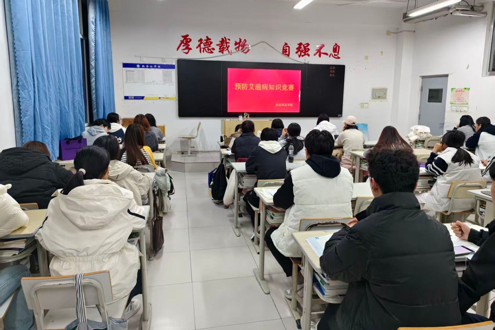 为进一步加强大学生对艾滋病的认知,提升自我防护意识,营造健康安全的校园环境。食品药品学院于11月4日至5日组织开展“知艾防艾·共享健康”预防艾滋病知识竞赛活动。本次活动采用“线下观影+线上竞赛”的联动模式,全方位推进防艾教育。线下环节,学院组织学生集中观看了《达拉斯买家俱乐部》《揭秘艾滋病》等具有教育意义的影片,以影像为载体,引导学生深入思考、科学认知。线上竞赛环节,学生通过扫描二维码参与答题。竞赛系统自动评阅,...更多 -