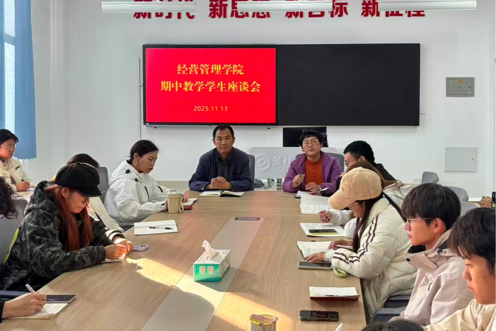 为全面了解本学期开学以来的教学运行状况,及时发现问题、改进不足,持续提升教育教学质量,11月13日下午,经营管理学院在智泽2号楼308会议室组织召开了本学期期中学生座谈会。学院党总支负责同志、分管教学负责同志、教学管理办公室工作人员、辅导员代表以及各班级学生代表共同参会。会议现场气氛坦诚融洽,交流热烈深入。会议由教学分管负责同志主持,她在开场中明确了召开此次座谈会的目的与意义。座谈会上,各班学生代表在前期广泛收集意见的基础上,...更多 -