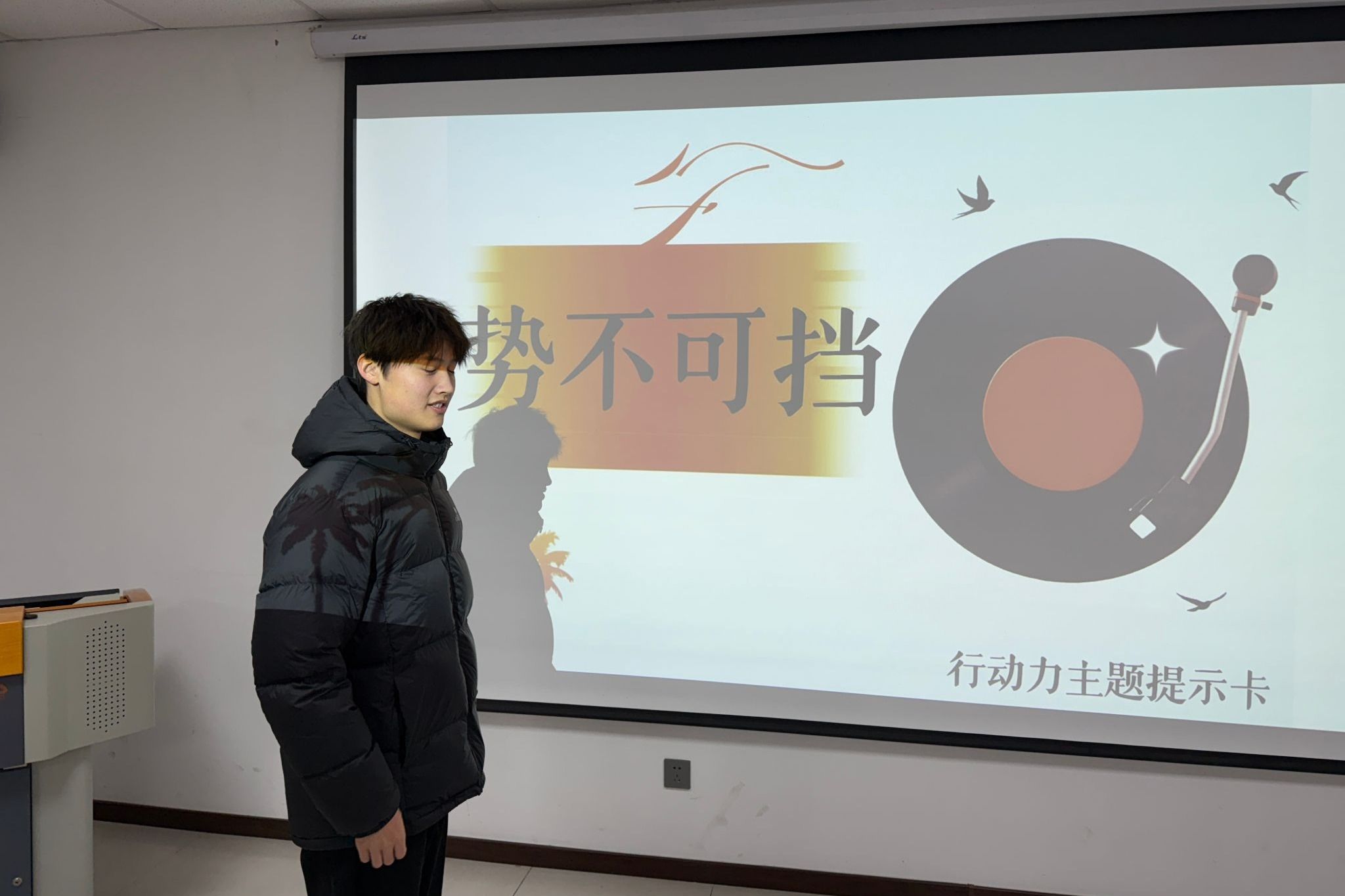 为丰富学生冬日校园生活,舒缓学业压力、呵护心理健康,12月23日,机电工程学院开展“能量唤醒站——音乐组队PK”冬日治愈心理活动。活动以趣味音乐互动为载体,通过“主题词抢唱”形式,让同学们在歌声中释放压力、凝聚温暖,为冬日校园注入治愈活力。本次活动聚焦冬日常见的情绪低落、精神倦怠等心理状态,将音乐治愈与互动竞技相结合,旨在通过轻松愉悦的氛围帮助参与者调节心理状态。活动现场设置展示屏幕,在屏幕上随机公布“行动主题词”...更多 -