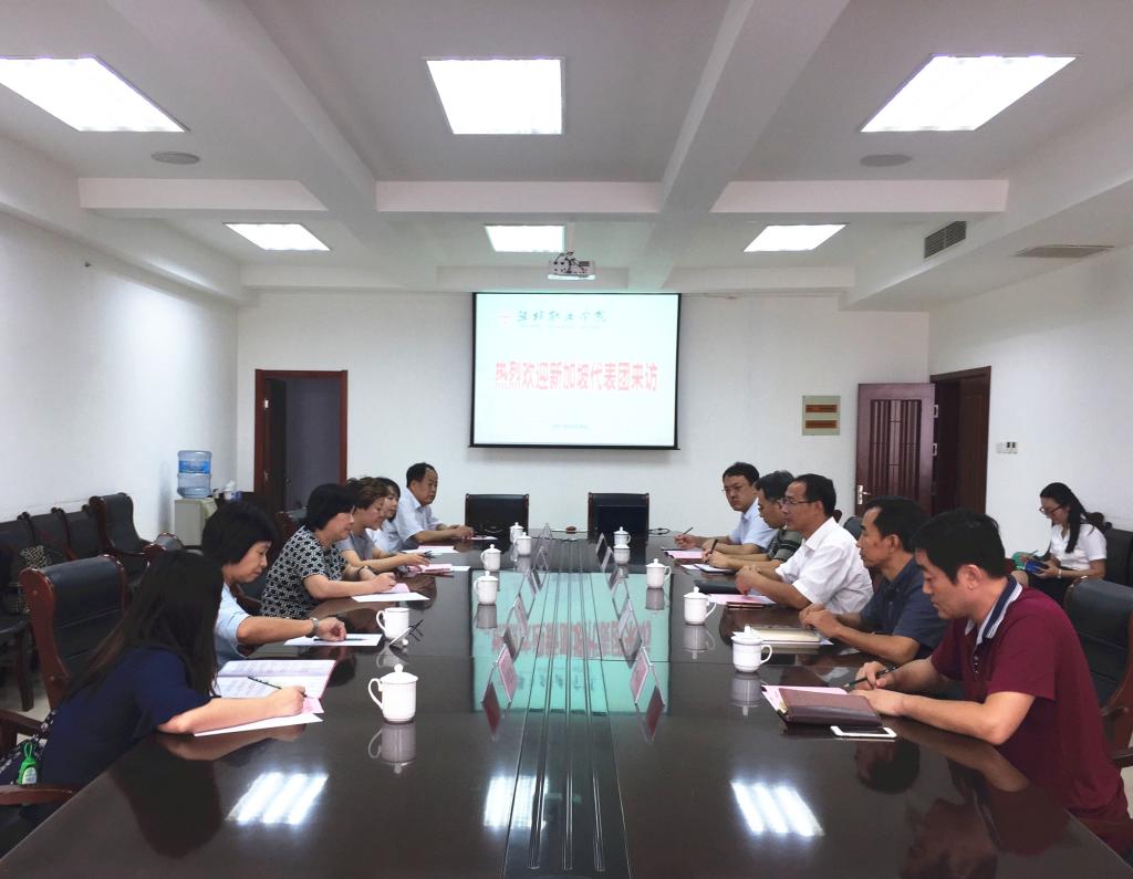赵君堂主持座谈会,对客人的来访表示热烈欢迎,介绍了学院的历史沿革、校区分布、专业设置、师资队伍建设和国际交流等方面的情况,并陪同客人观看了学院宣传片。