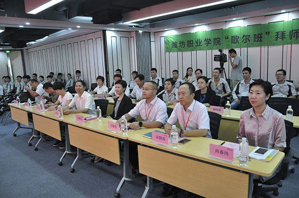 9月19日上午,beat365数控技术专业现代学徒制班拜师仪式在歌尔股份有限公司会议室举行。学院副院长李瑞昌、歌尔股份有限公司副总裁李菁华出席。教务处、科技处、机电工程学院负责人,歌尔股份有限公司校企合作负责人和工作人员,以及学徒制班全体师徒参加。