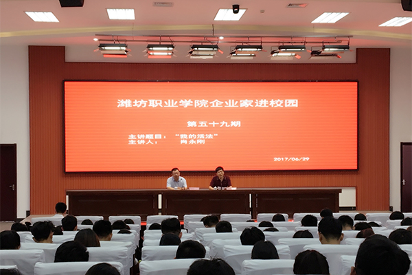 肖永刚现任中国电商委智众益合跨境电子商务服务平台负责人,山东智炎众益合供应链股份有限公司董事长,中华网商总会副会长,潍坊市进出口企业联合会会长。他的报告立足角色、责任、义务三个维度,以自己的人生成长、创业故事为依托,设计了儿子、丈夫、父亲、兄长、学生、员工、董事长、会长八个专题栏目,邀请同学们对感兴趣的角色依次进行点击选择。随后用朴实动人的语言和生动鲜活的案例,向同学们诠释了扮演好每种角色的宝贵经验,这些经验涵盖了求学、创业、为人父、管理、社交、业务洽谈等多个方面所需的必备条件,如知识、眼光、胆略、能力、毅力、原则、坚持坚守等,为同学们解开了心中的疑惑,照亮了前进的路。