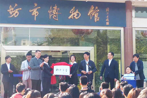 中国孔子基金会副理事长、副秘书长,季羡林研究所副所长王大千先生与潍坊市团委、潍坊市博物馆等相关领导为潍坊市“孔子学堂”挂牌并致辞。王大千先生指出,弘扬中华优秀传统文化,培育青年学生践行社会主义核心价值观具有重大意义。