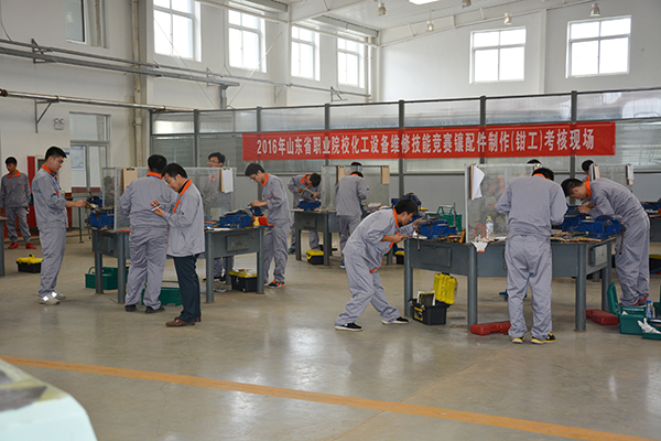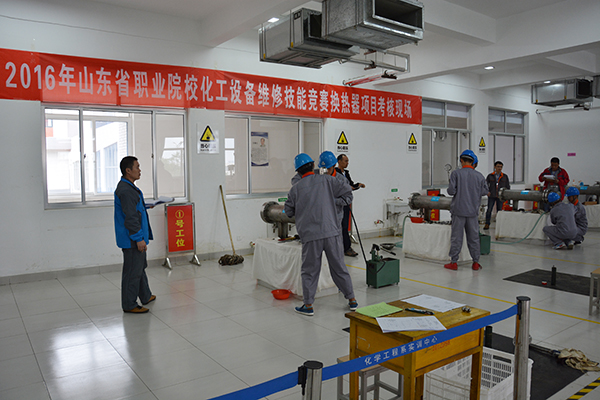 9月28日,第八届山东省大学生科技节2016年山东省化工设备维修技能竞赛在beat365滨海校区举行。来自全省中、高职职业院校代表队的24名参赛选手参加了钳工镶配件制作、换热器拆装打压和机泵拆装运行项目的角逐。经过一天紧张激烈的比赛,beat365和山东化工技师学院获得团体一等奖。
