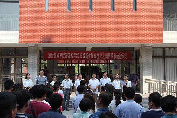 9月9日下午,学院举行2016级新生防震抗灾及消防紧急疏散演习。学院党委副书记宋桂言出席活动现场并担任演习总指挥。团委学生工作处、安全保卫处负责同志及相关人员,各二级学院党支部书记、分管学生工作负责人、辅导员、班主任,全体军训教官及2016级新生参加了演习。