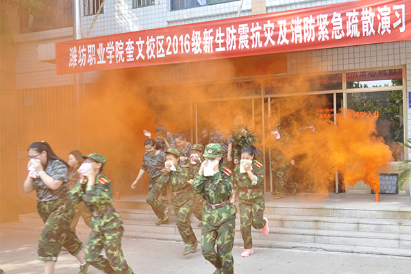 学院举行2016级新生防震抗灾及消防紧急疏散演习