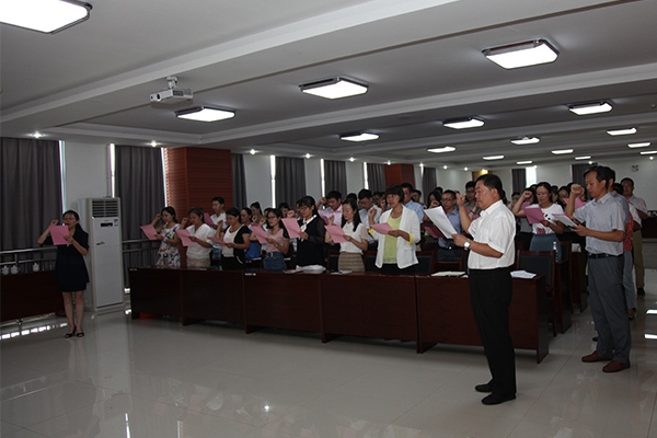 在第32个教师节来临之际,9月6日下午,学院组织近三年新进教师进行入职培训,并举行了宣誓仪式。学院党委副书记宋桂言出席并讲话。组织人事处、学生工作处、教务处、科技处负责同志及学院优秀教师代表参加活动。