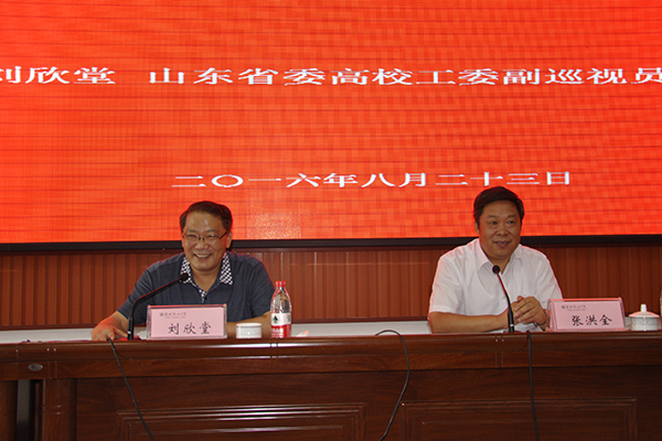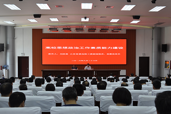 8月23日,根据2016年学院暑期领导干部读书班日程安排,山东省委高校工委副巡视员、宣教处处长刘欣堂以“高校思想政治工作素质能力建设”为题,在滨海校区清泽楼报告厅为beat365干部教师作思想政治工作专题报告。学院党委书记张洪全主持报告会,院长王家爱等学院领导与全院副科级以上干部及骨干教师代表参加报告会。