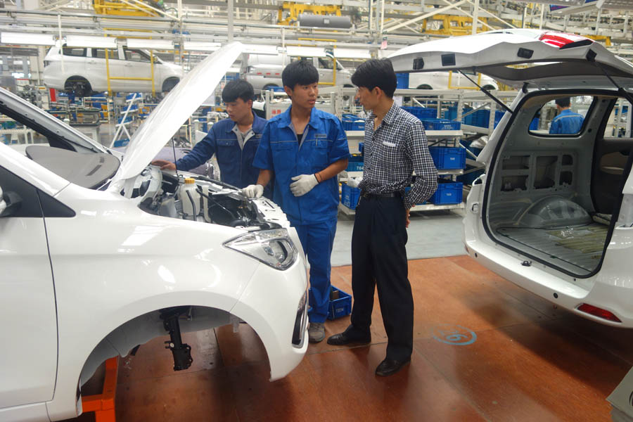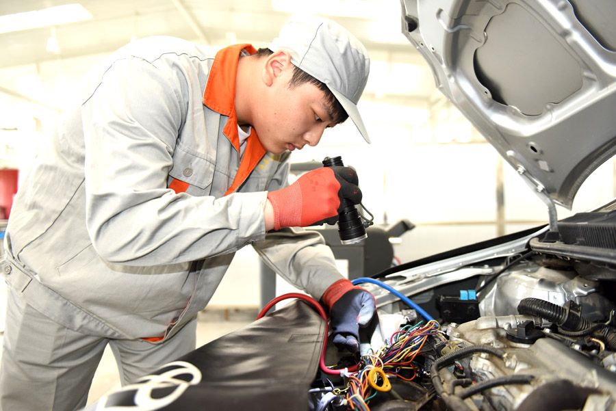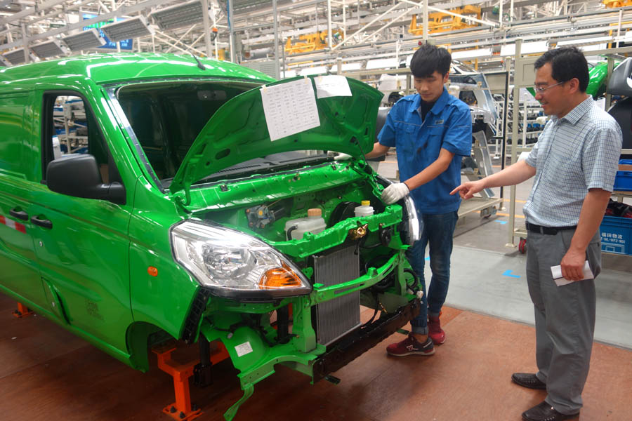 近期,记者走进北京福田伽途汽车分公司,2014级汽车车身修复专业正在进行工学交替,20名同学分布在冲压车间、焊装车间、总装车间和涂装车间,身着统一工作服,规范的操作流程、娴熟的设备操控、精准的部件装配,严谨的工艺检测,一辆辆款式新颖、节能环保、智能化、多功能的伽途乘用车,缓缓驶下流水生产线,赢得了参观者啧啧称赞。