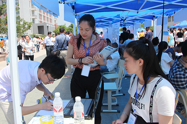 本次招聘会共吸引了500余家企事业单位参会,济南、青岛、烟台、威海、日照、潍坊以及北京、安徽、河北等地的省内外用人单位,特别是潍坊滨海开发区企业更是成为招兵买马的主角,其中不乏歌尔声学、福田雷沃、华晨生化、海信电器、魏桥铝电、万声通讯、豪迈集团、中东传媒、阳光纸业、海利尔药业等大中型企业。参会单位提供各类岗位数量达10000个,主要面向驻潍高校毕业生以及准备参加顶岗实习的学生,参会学生人数近万人。驻潍高校毕业生积极参加招聘,表现出了良好的专业能力和综合素质,体现了当代大学生优秀的精神面貌,受到用人单位的广泛赞誉。会上,用人单位与相关专业毕业生进行了有针对性的洽谈,当天共有5000余名学生和用人单位达成了初步就业意向。阳春乳业副经理董雷涛说“前期来beat365英国官方网站作过宣讲报告,学生悟性高,动手能力强,肯吃苦敢担责,今天主要针对行政内勤、市场营销、技术检验三个方向招聘人才,从招聘情况来看很满意,通过面试后将纳入公司发展的人才储备库。”