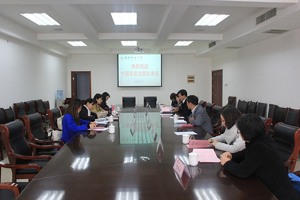 3月23日,中国农业出版社职教分社社长杨金妹一行4人,来beat365就教材建设等方面工作进行调研。学院中专部、农业工程学院、园林工程学院、机电工程学院、经营管理学院等部门负责同志参加座谈交流。