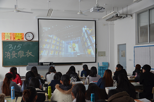 观看中央电视台“3•15”晚会。3月15日,各二级学院通过组织观看“3•15”晚会,关注消费预警,关注网络购物、汽车消费、手机消费等消费热点问题,关注消费市场存在的侵权违法行为,提高了同学们消费维权意识,有利于营造安全便利、公平竞争、诚信守法的消费新生态。(王学强 臧学运供稿)