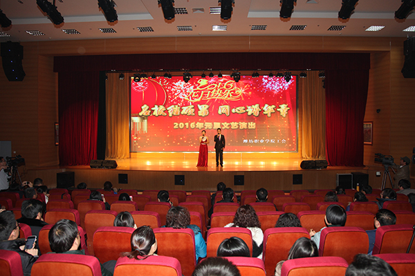 12月31日下午,学院“名校结硕果,同心谱华章” 教职工2016年元旦文艺演出在图书馆报告厅举行。院长王家爱等学院领导观看演出,与教职员工欢聚一堂,共度美好节日。