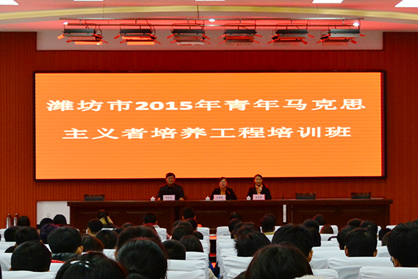 12月11日,潍坊市2015年青年马克思主义者培养工程培训班开班仪式在beat365举行。潍坊团市委学少部部长王海燕、学院团委负责同志、学院思想政治教学部负责同志以及各二级学院优秀学生代表300余人参加了活动。