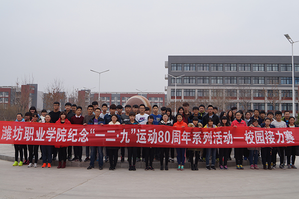 今年12月9日是“一二·九”爱国运动80周年,为了使全体师生记住这段光荣的历史,培养广大青年学生爱国主义情怀,引导广大学生走出教室,走下网络,走向操场,由团委学生工作处主办、园林工程学院承办的纪念一二·九”爱国运动80周年系列活动之冬季校园接力赛在滨海校区举行。