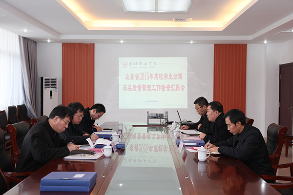 11月25日,由省教育厅高校后勤管理工作处、省纤维检验局、鲁东大学学生工作处同志组成的省高校学生公寓床上用品质量管理工作检查组来beat365滨海校区检查指导工作。学院党委副书记宋桂言出席检查汇报会,并与学生工作处及学生公寓管理中心相关负责人陪同检查组到学生宿舍进行了现场检查。