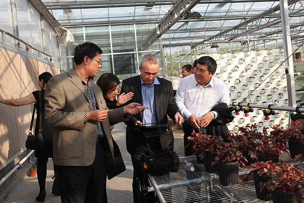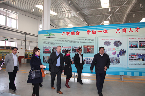 王家爱等陪同客人参观了滨海校区。(李珊珊供稿)