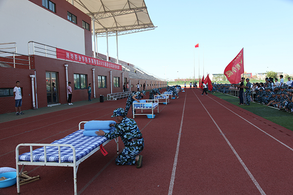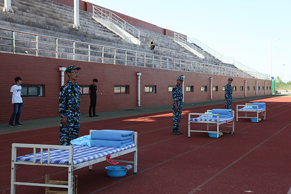 学院滨海校区举行2015级新生军训内务比赛