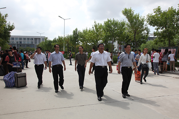 报到当天,学院院长王家爱率领领导班子成员来到报到现场,向接待人员仔细询问了有关新生报到情况,又来到学生公寓看望了报到入住新生,并与学生、家长亲切交谈,鼓励同学们学好专业知识,积极参加社会实践活动,全方位提高综合素质,成长为国家和社会需要的技术技能人才。