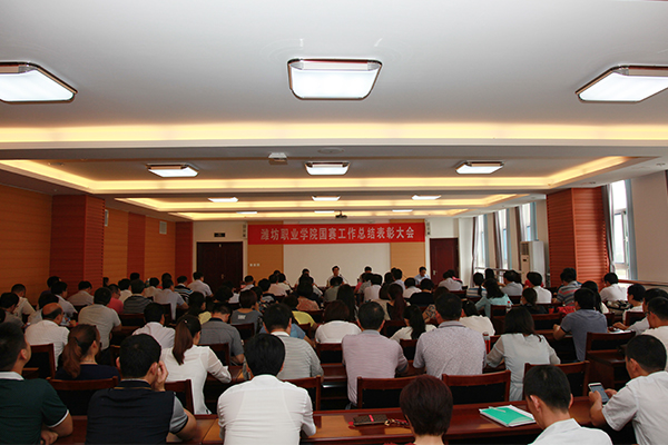 6月23日下午,学院承办国赛工作总结表彰大会在滨海校区召开。潍坊市政府党组成员、学院党委书记陈仁杰出席并讲话,学院领导班子出席,各部门行政负责人、大赛办公室及各职能组全体人员参加了会议。