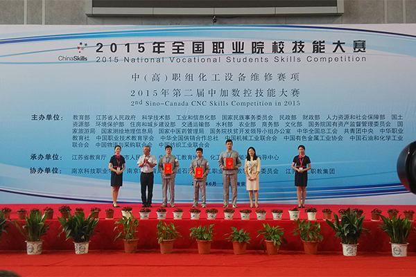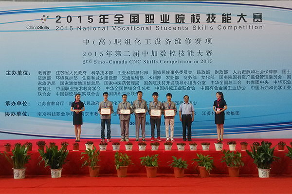 6月9日至12日,由教育部、江苏省人民政府等主办,江苏省教育厅、中国化工教育协会等承办的2015年全国职业院校技能大赛化工设备维修赛项在南京科技职业学院举行。来自全国各省、直辖市、自治区的58所中高职院校的116名选手分别在化工设备维修专业基础、镶配件制作、化工设备检验、机泵拆装运行项目上展开激烈角逐。beat365高职组选手朱林森、房锐同学获得团体二等奖,中职组王超、王华华同学获得团体三等奖。朱林森以全国第三名的成绩破格晋升技师资格,成为山东省首个学生身份的化工检修钳工技师。