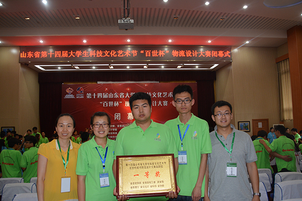 6月2日至4日,山东省第十四届大学生科技文化艺术节“百世杯”物流设计大赛在山东英才学院举行,全省41所大专院校的77支队伍参加比赛。beat365经营管理学院物流管理专业袁陆、邵赞赞、张欣三名同学在比赛中沉着应战、稳定发挥,经过两天的激烈角逐,最终获得一等奖。指导老师王妮娜、庞立伟获优秀指导教师称号。