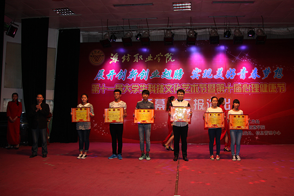 5月14日晚,由学院团委学生工作处主办,师范/文化创意学院团总支承办的以“展开创新创业翅膀,实现美好青春梦 ”为主题的学院第十一届大学生科技文化艺术节暨第十届心理健康节开幕式汇报演出在学院奎文校区报告厅举行。学院党委副书记宋桂言、学院纪委书记李瑞昌出席。团委学生工作处负责同志,中专部和各二级学院党支部书记、分管学生工作负责同志和团总支书记参加并观看演出。