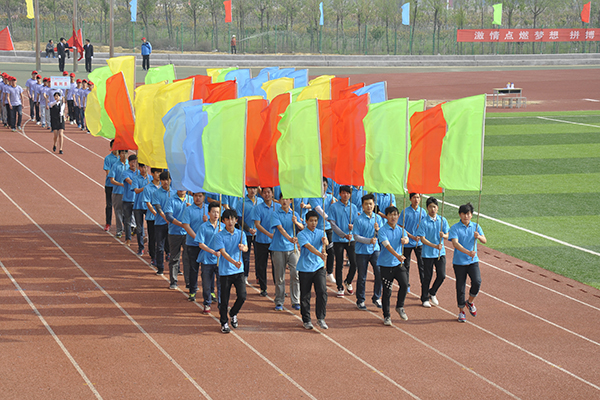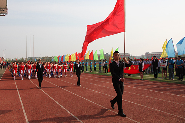 伴随着激昂的运动员进行曲,国旗队、彩旗队、裁判员队及各代表队依次入场。一支支队伍迈着整齐有力的步伐走过主席台,以昂扬奋发的姿态接受学院领导的检阅。
