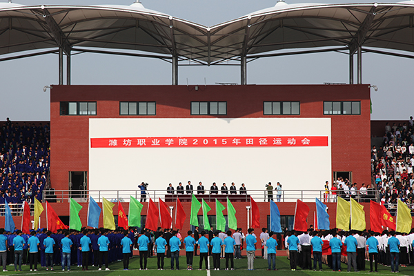 4月27日,学院2015年田径运动会在滨海校区体育场隆重开幕。潍坊市政府党组成员、学院党委书记陈仁杰,学院院长王家爱,潍坊滨海科教创新区管理服务中心主任谭树田,学院党委副书记宋桂言,正县级干部娄树军,副院长赵君堂、贺志强、毕建华等出席开幕式。开幕式由王家爱主持。