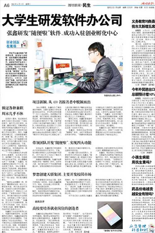 媒体潍职:[潍坊晚报]大学生研发软件办公司