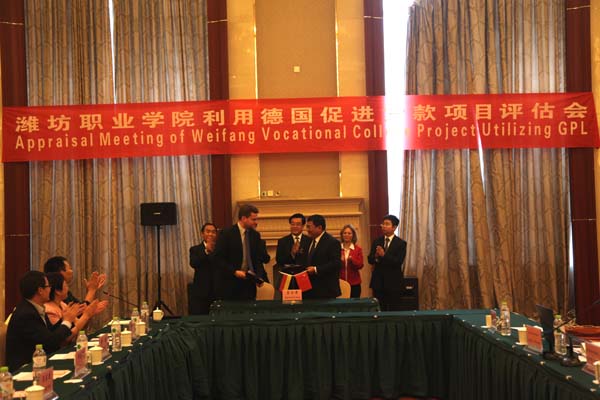 9月23日—26日,由德国复兴开发银行(简称KFW)Ms.Ulrike Lassmann吴丽女士率领的评估组一行5人,对beat365德促项目进行考察评估。潍坊市政府副市长潘强出席评估会并致辞,潍坊市政府党组成员、学院党委书记陈仁杰,学院院长王家爱,省发改委外资处副处长廉刚,市发改委副主任王明松,市财政局副局长刘锡田,学院副院长赵君堂、毕建华,中信国际招标有限公司相关领导出席评估会。学院有关部门、二级学院负责同志参加。