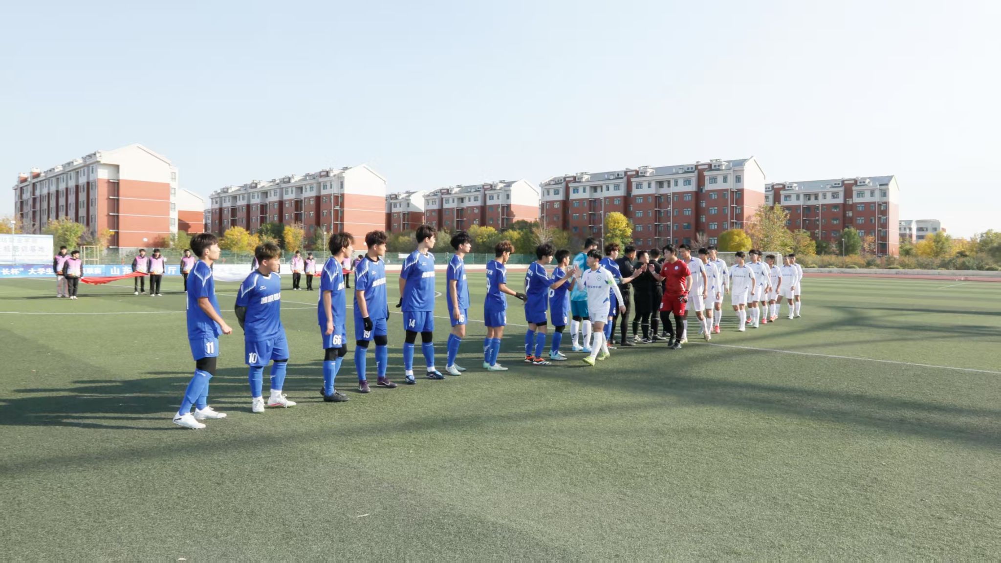 11月3日,备受瞩目的山东省首届“省长杯”大学生足球超级联赛潍坊赛区比赛在beat365鸣哨开赛。学院院长韩瑞东,党委委员、副院长赵宏坤出席,韩瑞东开出首球,为这场盛大的校园足球盛会按下了“启动键”。