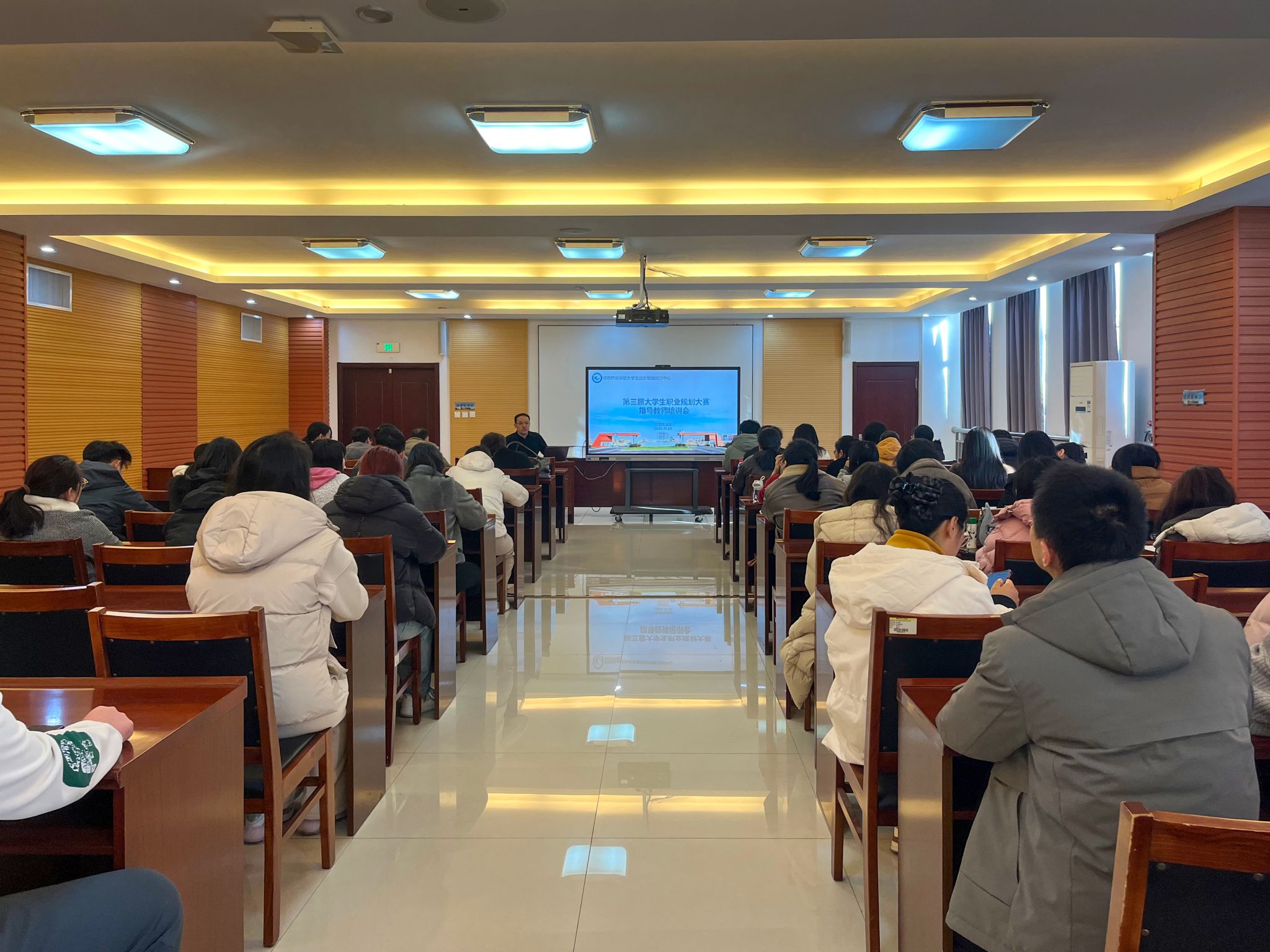 11月20日下午,学院在滨海校区北区清泽楼312会议室举办第三届大学生职业规划大赛指导教师培训会。会议由招生就业处有关同志主持,学院第三届大学生职业规划大赛校赛70余名指导教师参会。本次培训旨在帮助指导教师全面理解大赛政策、评审标准与指导要点,进一步提升赛事组织质量与选手备赛水平。