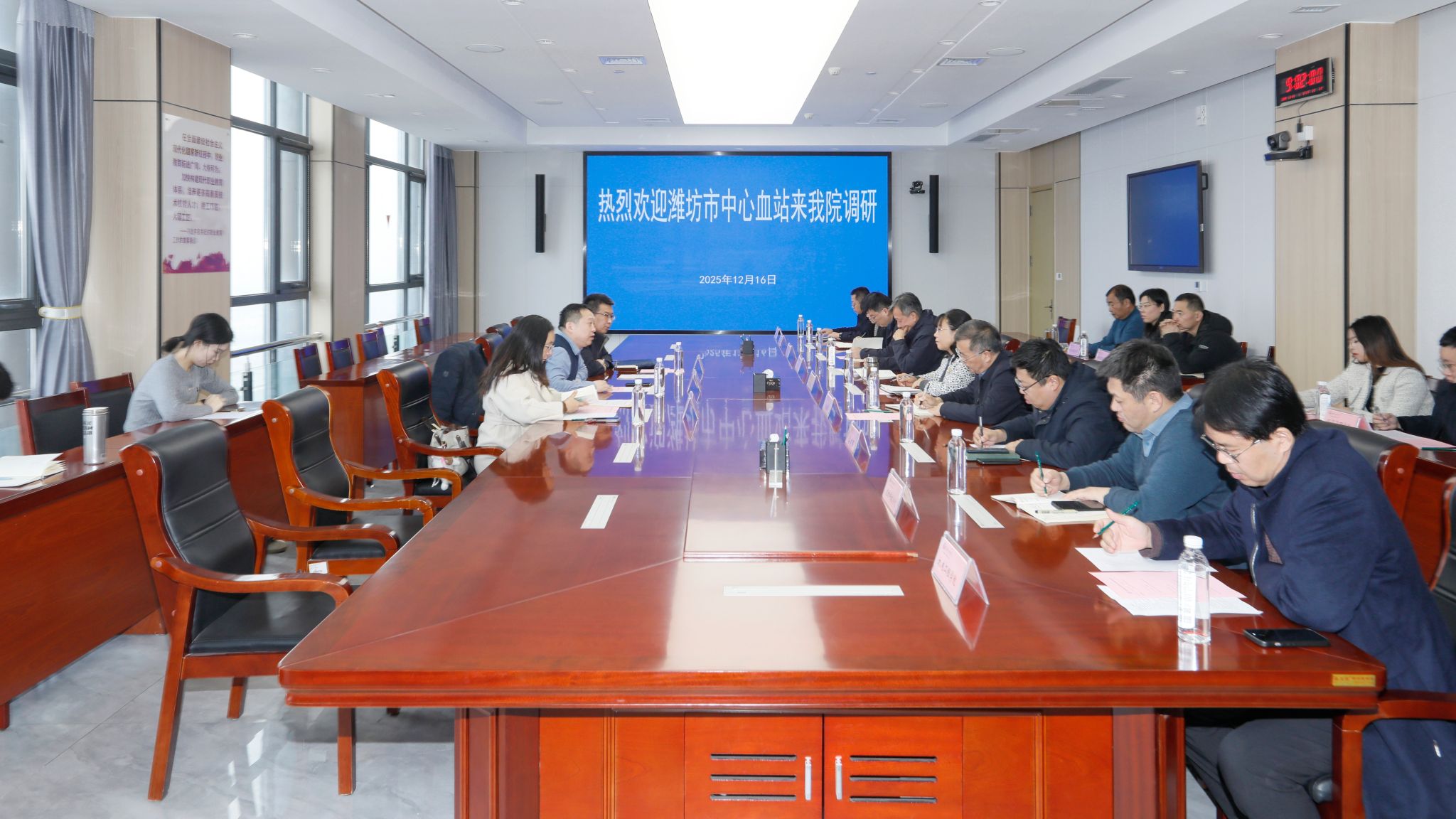 11月16日上午,潍坊市中心血站党委书记、站长王胜一行3人到beat365开展调研。学院党委委员高凌云,党委委员、副院长任培华,学院工会、团委学生工作处负责同志,各二级学院分管学生负责同志参加。
