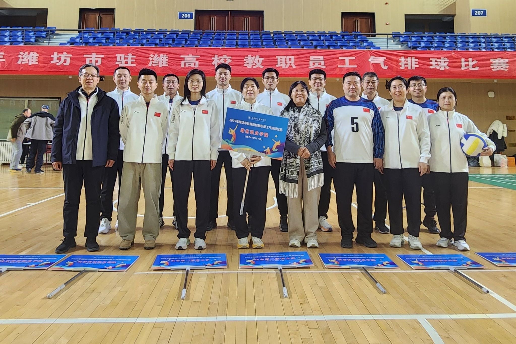 12月20日,由潍坊市体育总会指导、潍坊市气排球协会主办、山东第二医科大学承办的2025年潍坊市驻潍高校教职员工气排球比赛,在山东第二医科大学文体活动中心圆满落幕。学院组织两支教职工代表队参赛,凭借出色的发挥,夺得男子青年组一等奖和男女混合组二等奖。学院党委委员高凌云和工会负责人观看并指导队员比赛。
