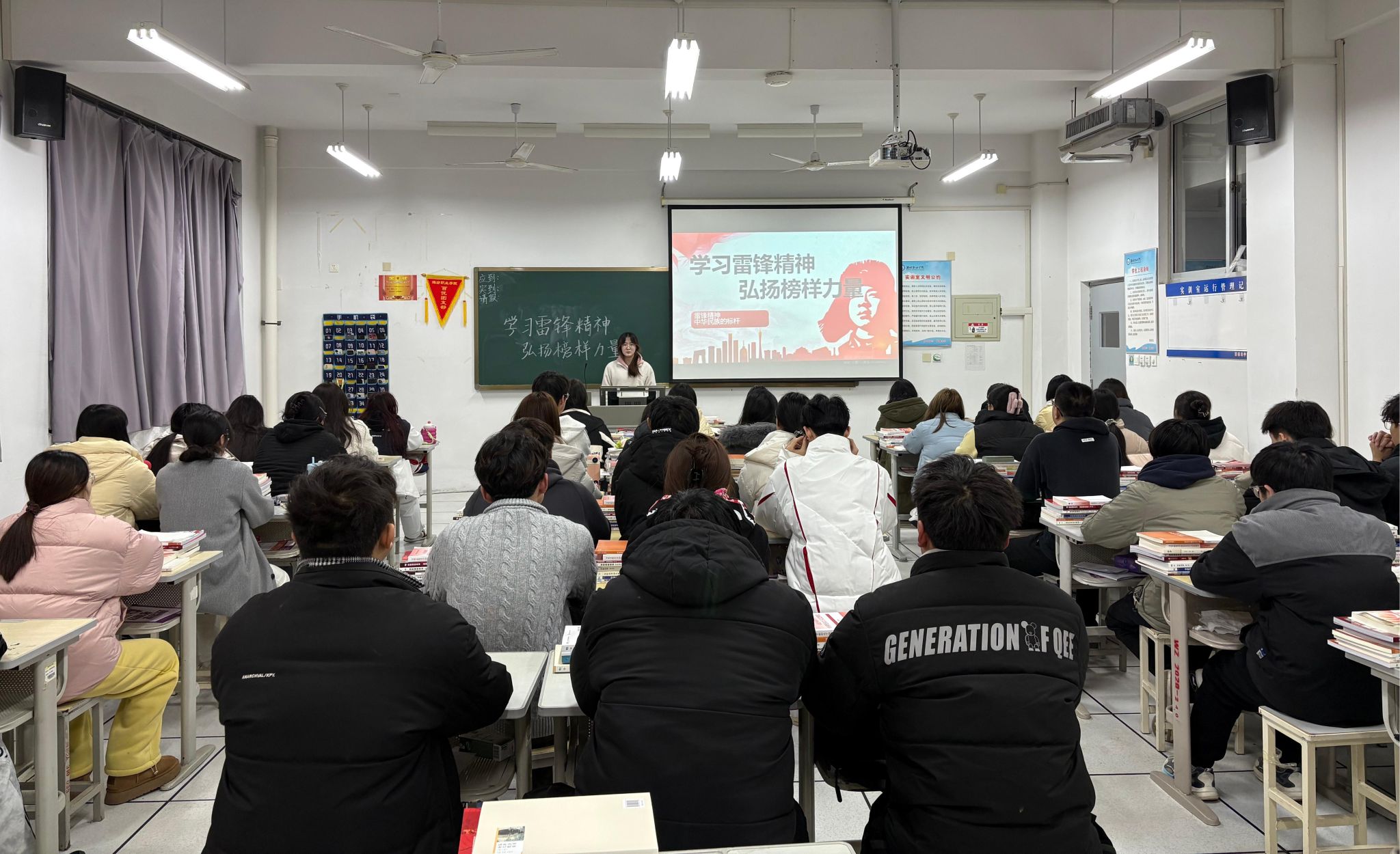 各班团支部通过主题团课、纪录片观影、分组研讨、倡议签名等形式,深入学习雷锋同志的先进事迹。团支书带领同学们重温了雷锋“钉子精神”“艰苦奋斗”等经典故事,观看《雷锋》等经典影片,了解雷锋从平凡走向伟大的成长历程,深入阐释了雷锋精神与新时代青年使命的紧密联系。同学们围绕“雷锋精神在当代的体现”以及“新时代如何践行雷锋精神”等话题展开热烈讨论,纷纷表示要将雷锋精神融入到日常学习、生活中,从身边小事做起,用实际行动诠释雷锋精神,为学院营造互帮互助、积极向上的良好氛围。同学们纷纷在活动横幅上签字留念,并表示要将雷锋精神融入日常学习与生活,用实际行动诠释新时代青年的责任与担当,让雷锋精神在新时代绽放更加璀璨的光芒。