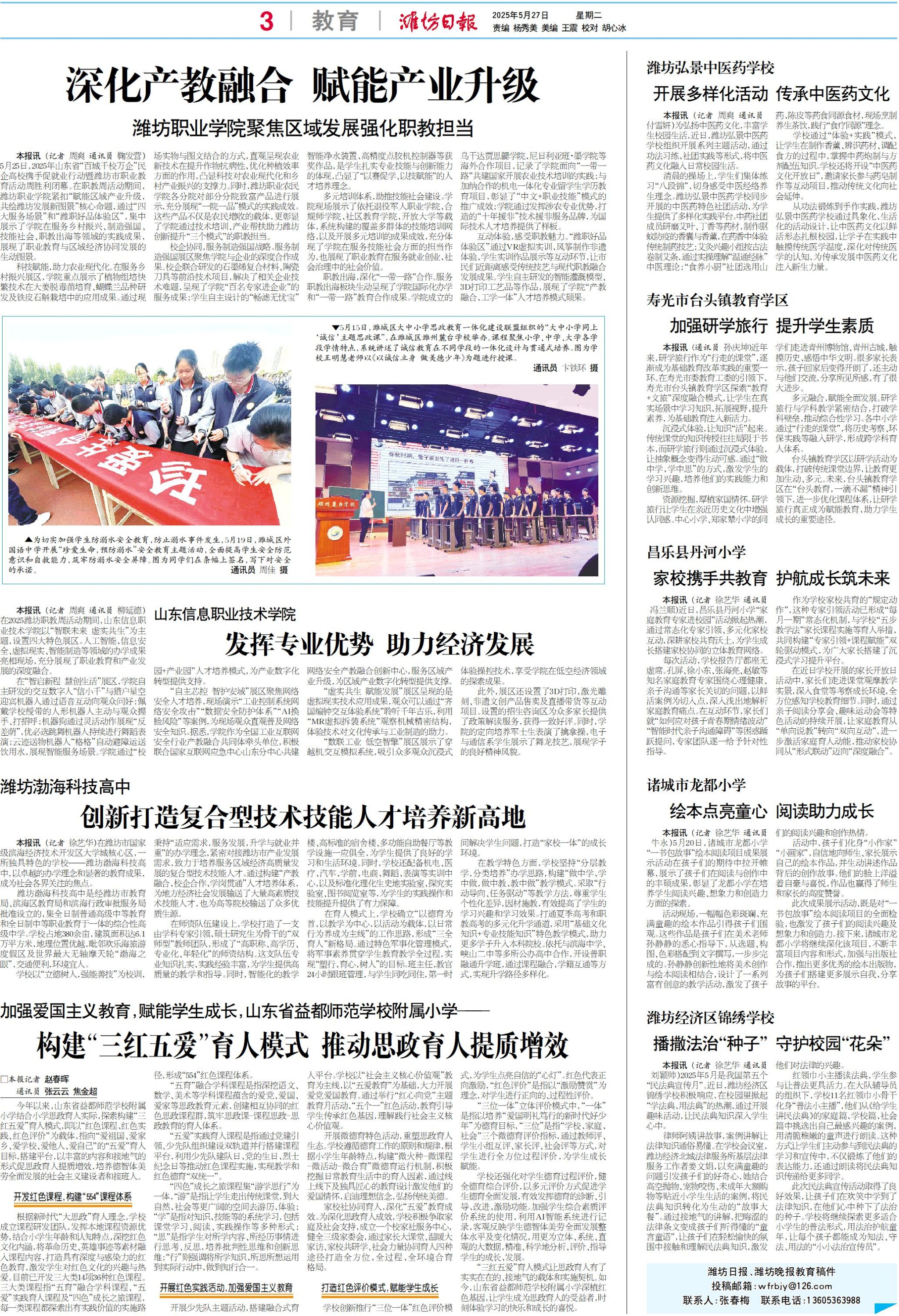 [潍坊日报] 深化产教融合 赋能产业升级 beat365英国官方网站聚焦区域发展强化职教担当