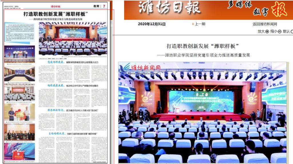 [潍坊日报]打造职教创新发展“潍职样板”——beat365英国官方网站坚持党建引领全力推进高质量发展